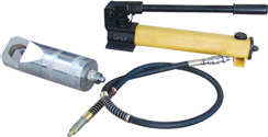 3、壓動手動油泵,使劈刀頂出推進至螺母,當劈刀頂進螺母二分之一時,須小心的壓動手泵,以免用力過猛,劈刀快速將螺母劈開損傷螺栓絲扣。