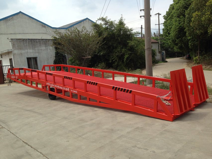 移動式液壓登車橋是與叉車配合使用的貨物裝卸輔助設(shè)備,可根據(jù)汽車車廂的高低調(diào)節(jié)高度,叉車可以直接通過本設(shè)備駛?cè)胲噹麅?nèi)